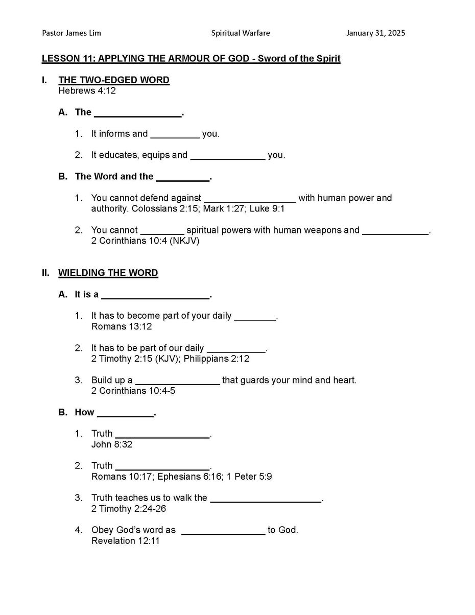 Spiritual Warfare Lesson 11 Armour of God Sword of the Spirit January 2025