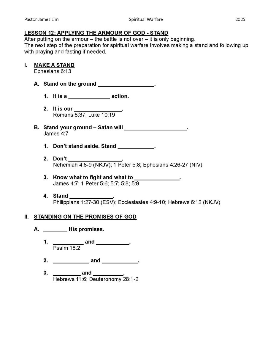 Spiritual Warfare Lesson 12 Armour of God Stand